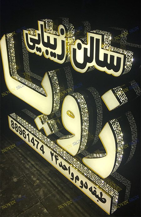 یکی از پرکاربردترین انواع تابلوهای تبلیغاتی حروف برجسته، که با ظاهری لوکس و مدرن که از متریال های مختلفی ساخته شده است.